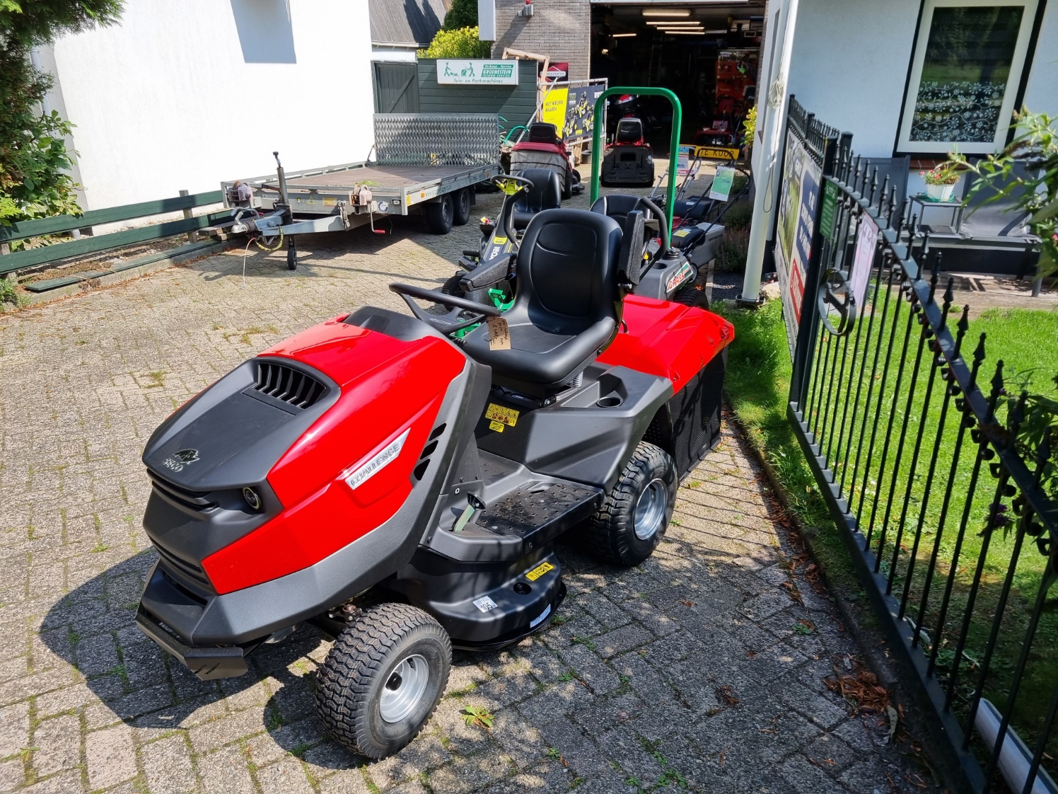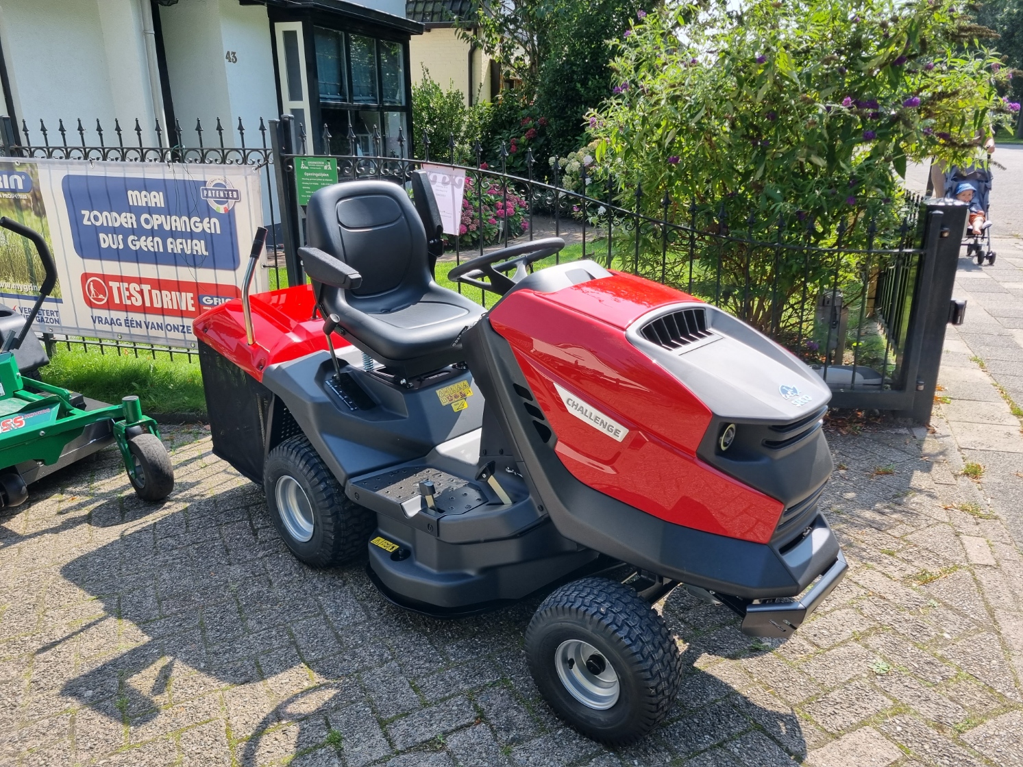Sterke zitmaaier met opvang. De maaibreedte van deze machine is 92 cm. De machine is uitgevoerd met een 22pk 2-cil Briggs & Stratton motor en weegt 237 Kg.